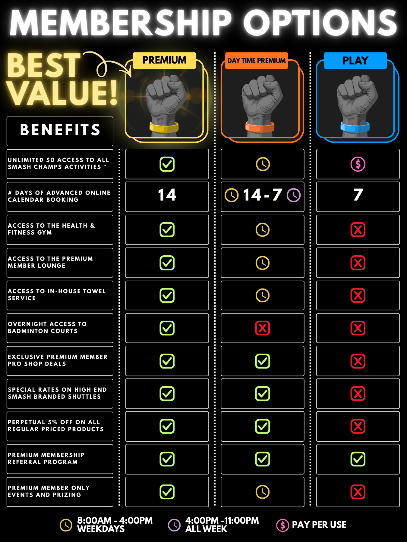 DAY TIME PREMIUM MEMBERSHIP PRICING